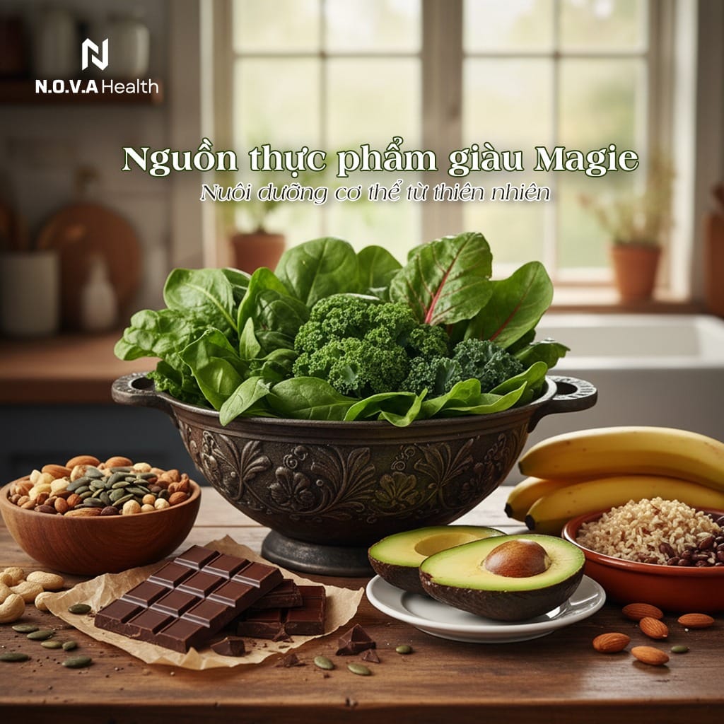 Magie tập trung nhiều ở đậu, hạt, rau xanh đậm → nhưng đây không phải nhóm thực phẩm phổ biến trong thực đơn người Việt.